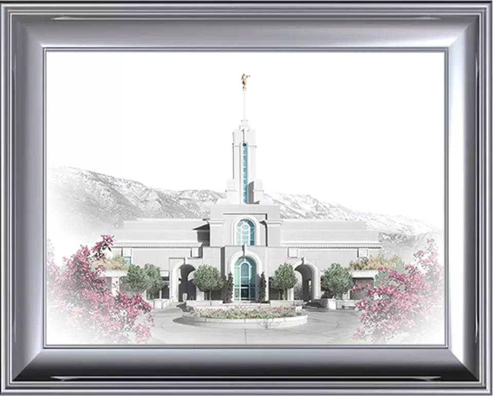 This beautiful Mt Timpanogas painting by Brent Broup is part of his Celestial temple series. It makes a great wedding gift and is a beautiful addition to any latter day home d�cor.