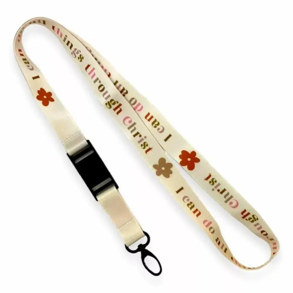 Doodle Beads Lanyard I Can Do All Things Cream Flowers