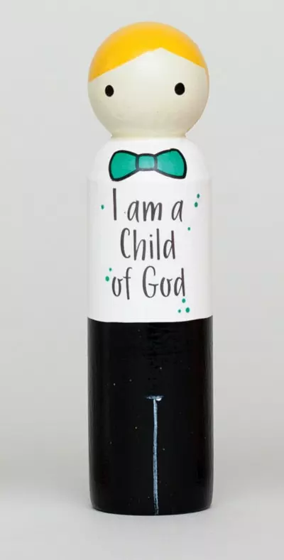 I Am A Child Of God Peg Doll Green Tie Boy 4. 5 Inch