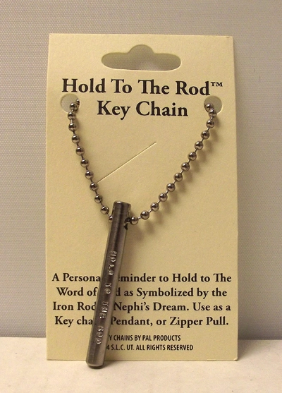 Hold to the Rod Key Chain. Approx. 1 3/4 inches long. A personal reminder to hold to The Word of God as symbolized by the Iron Rod in Nephi’s Dream. Use as a Key Chain, Pendant, or Zipper Pull.