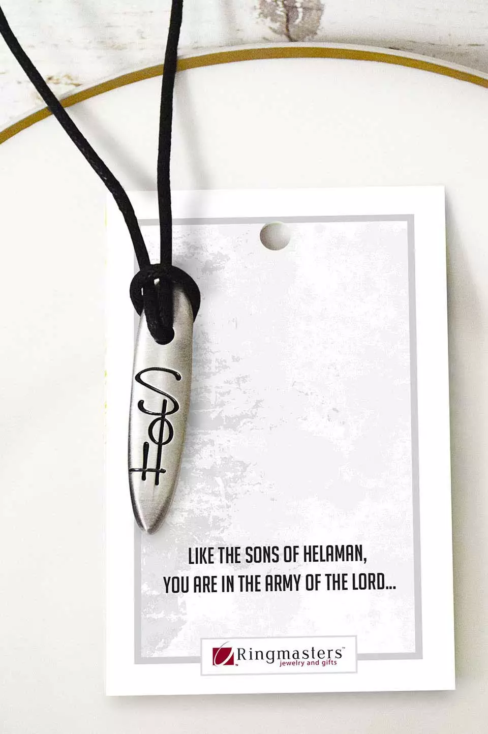 This pendant is approximately 2″ and comes complete on a 22″ black cord