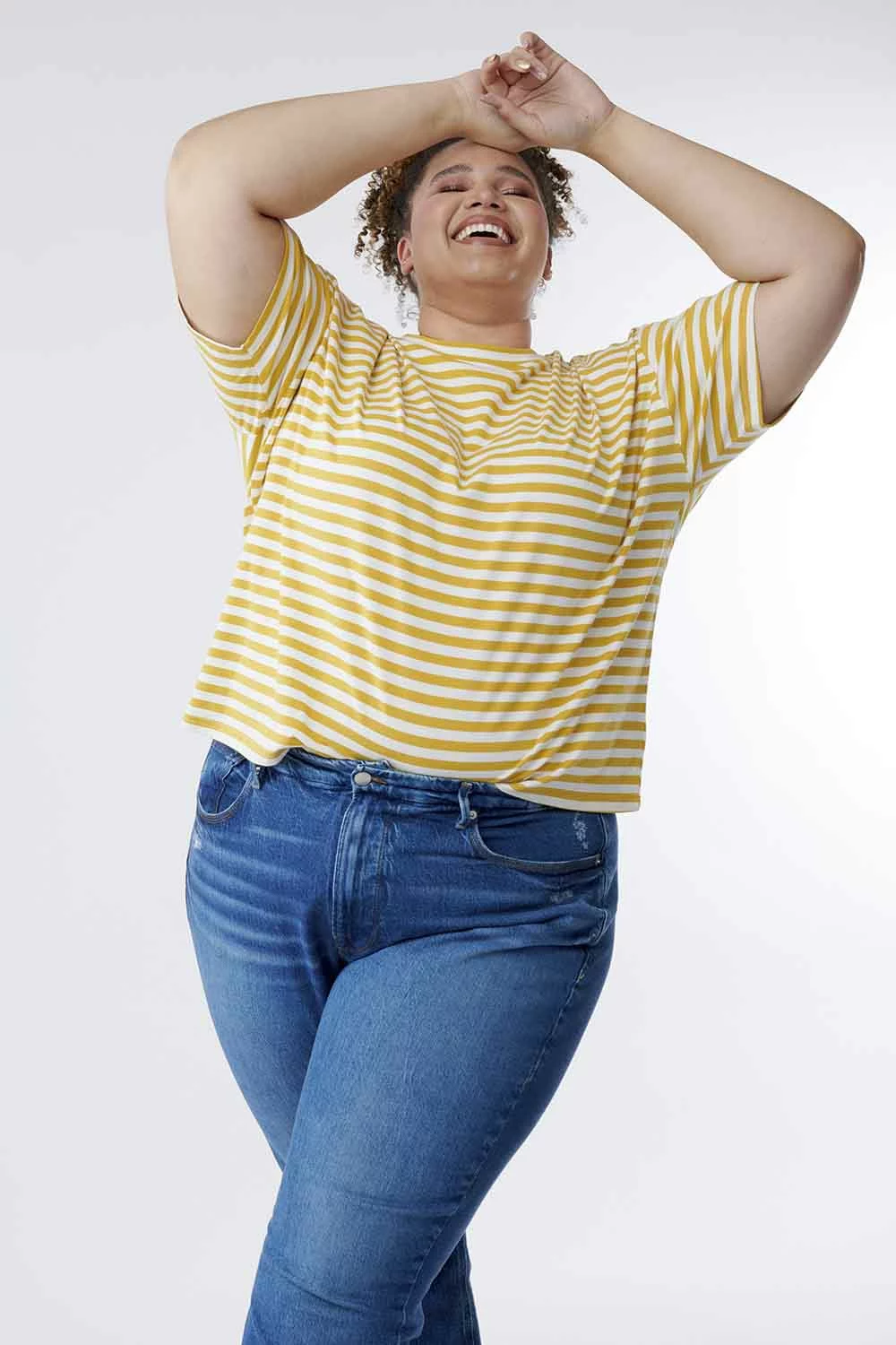 Stripes will never go out of style, and we are loving the look of this boxy striped shirt. Comfortable and modest with a higher neckline, this top will bring a classic, vintage feel to your closet.