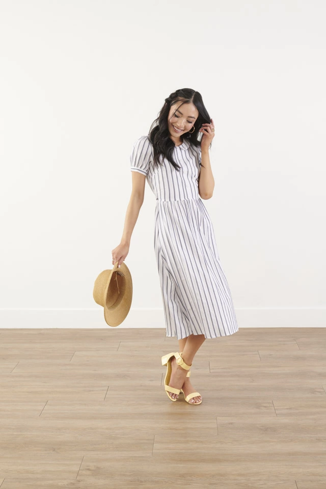 This midi dress is delightful in every way. There are so many elements about it to love, from the delicate striped pattern to the puffy sleeves to that adorable collar! The only thing that could make it better is if you were wearing it!