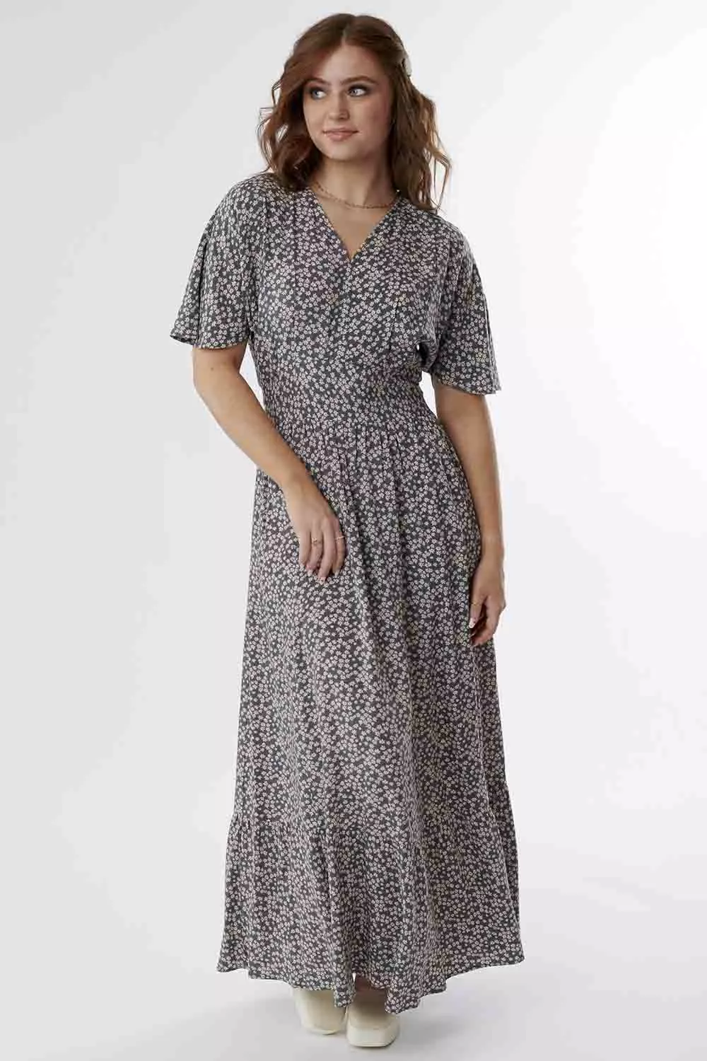 Small-print florals are on trend this season, and we have got you covered. This fun floral dress has a flattering v-neck, dolman sleeves, and pockets! You might say it is practically perfect in every way.