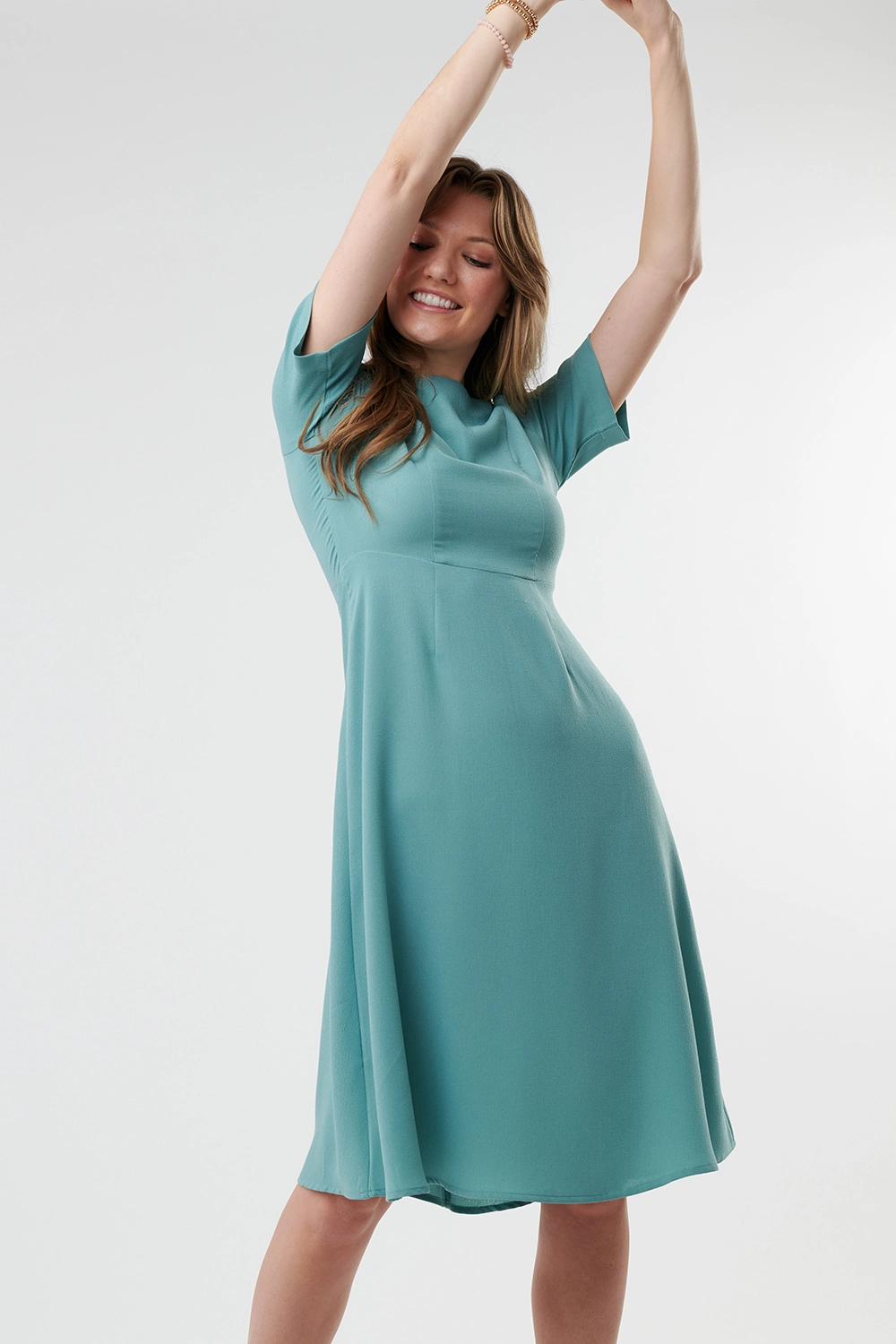 This fitted a-line dress is sure to be a classic in your closet. Knee-length with a flattering cut, this dress is a keeper.