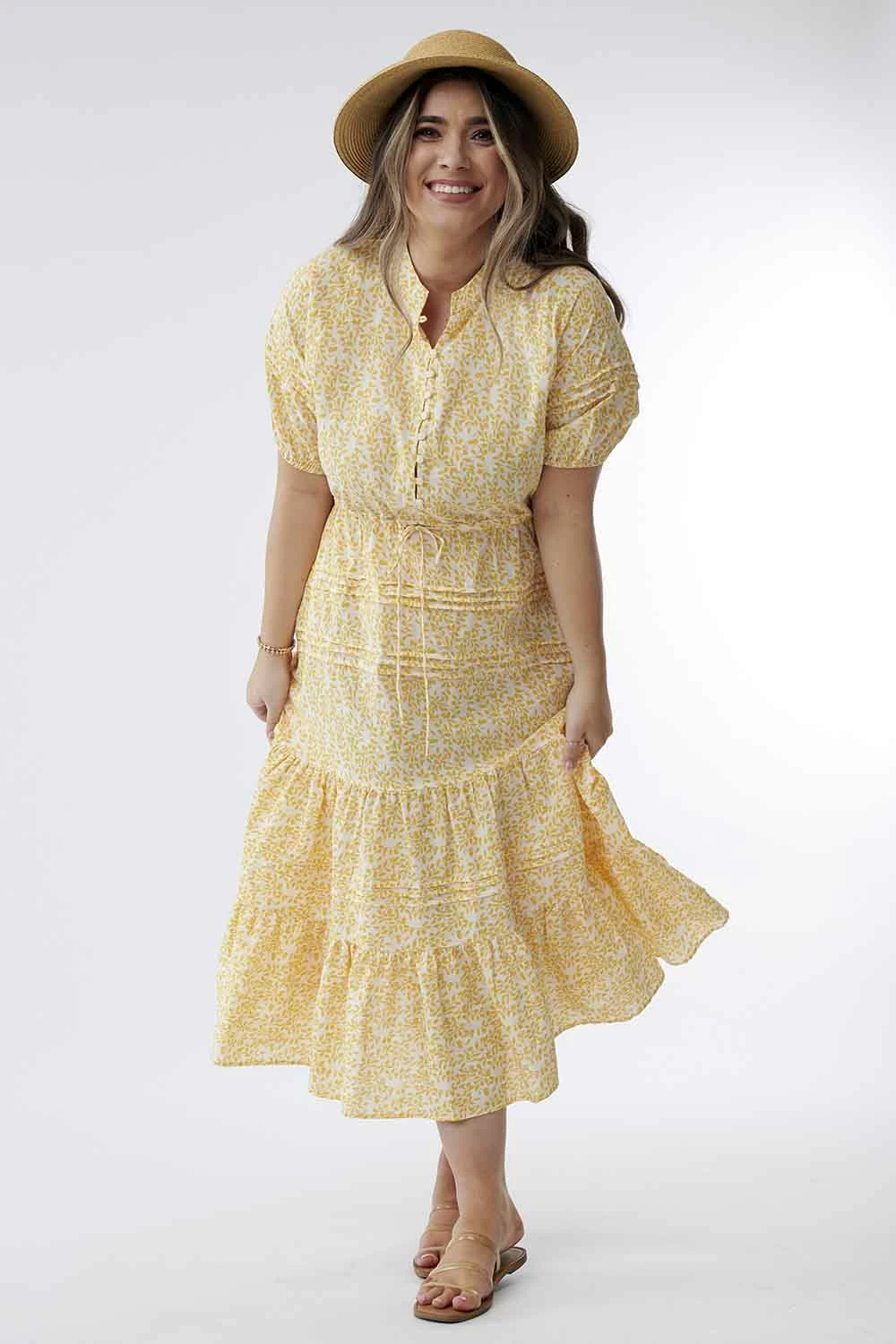 Cotton dresses are perfect for spring, and this lovely cotton dress is exactly what you need for the new season. This dress also has pockets, puffed sleeves, and a drawstring waist.