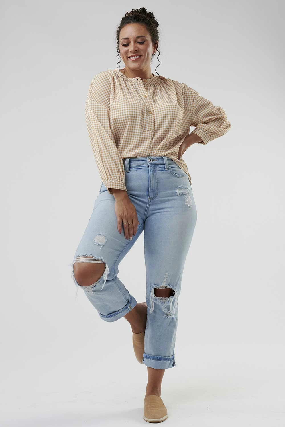 Stunning. Iconic. Beautiful. Amazing how each of these adjectives describes both you and this top! With a drop-shoulder design, long sleeves, and cute buttons down the front, this blouse will be your go-to this fall.