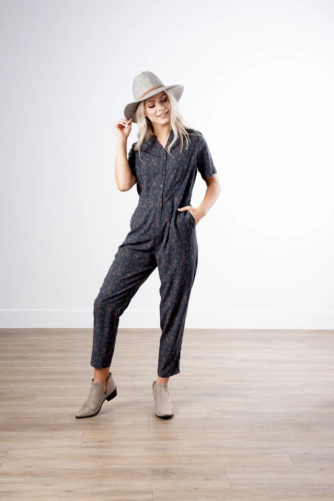 Get ready to feel gorgeous in our Mandarin Neck Leaf jumpsuit! With its pockets, v-neck, and pretty prairie vibes, this jumpsuit hits all the latest trends while still leaving you comfy and modest. This jumpsuit is nursing friendly with buttons down the bodice. Our model is 5’7″ and wearing size 4.