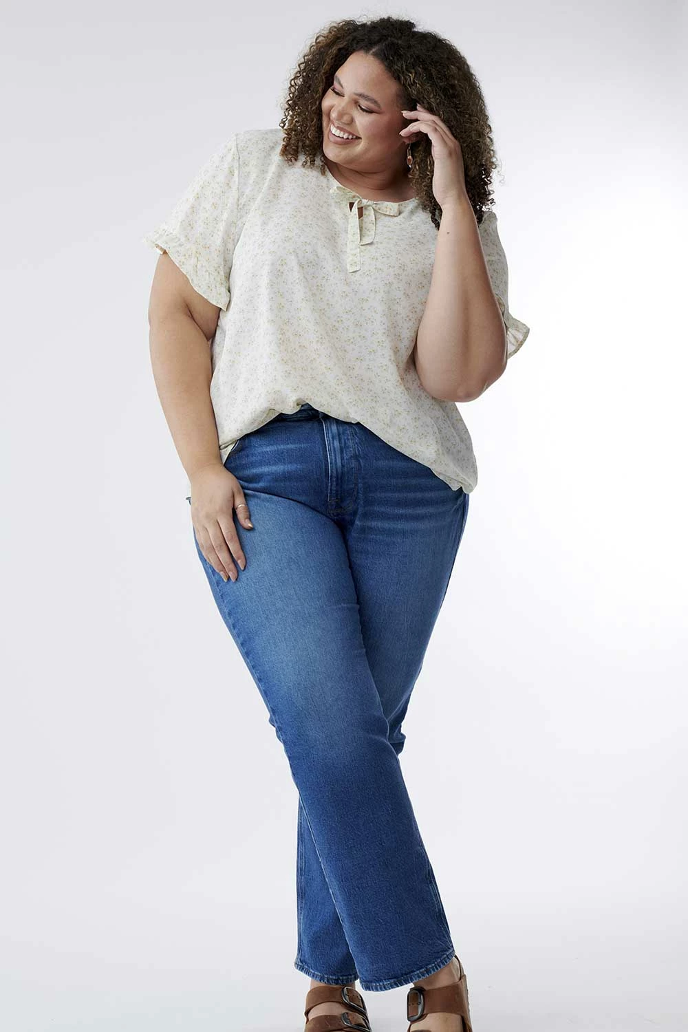 With a necktie, ruffle sleeves, and a darling floral design, you are going to want this top in your closet come spring. Lightweight and flattering, this top is also nursing-friendly for moms!