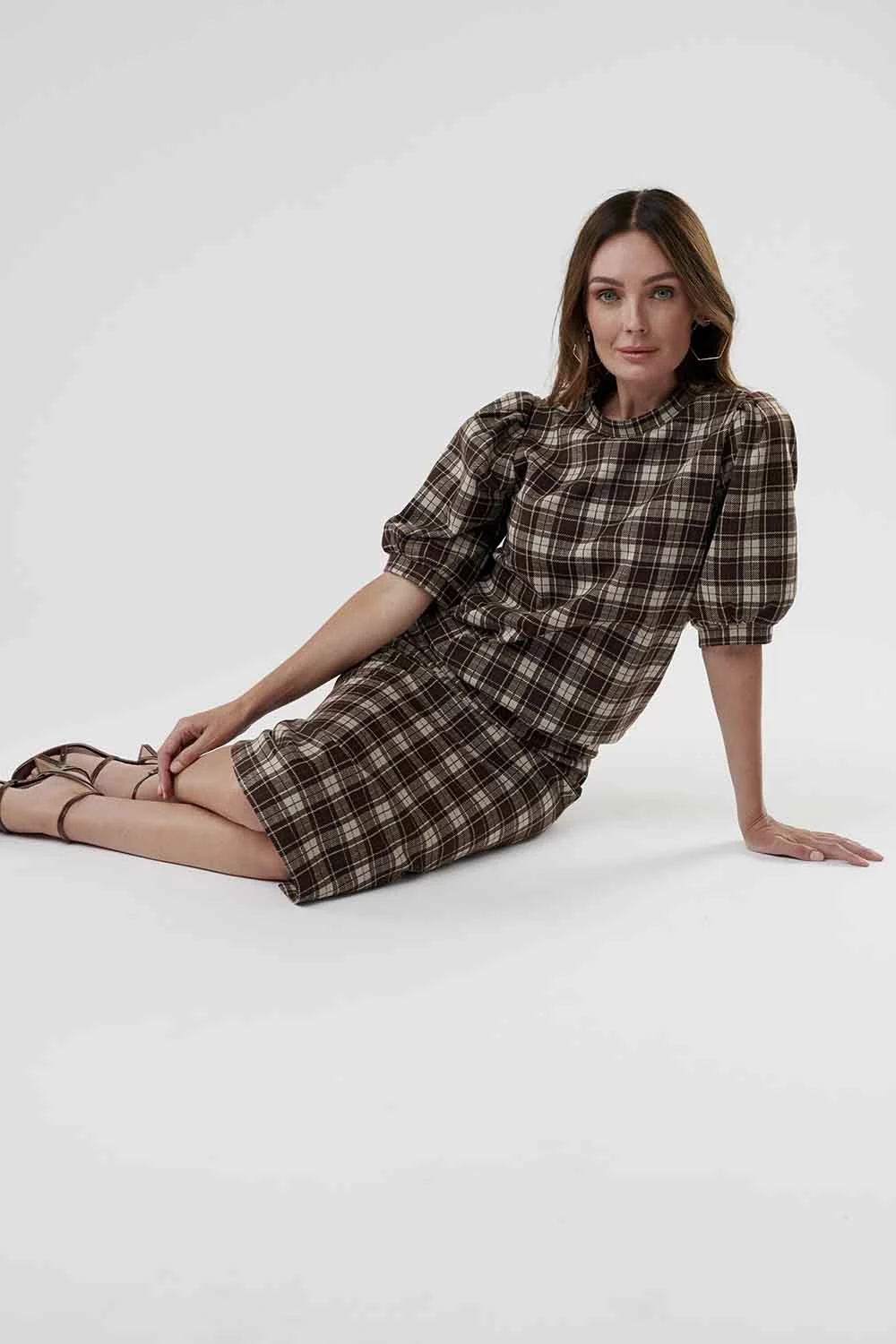 Puffed sleeves? Yes please. Take a step back in time with this darling plaid shirt featuring a crew neck and a flattering fit.